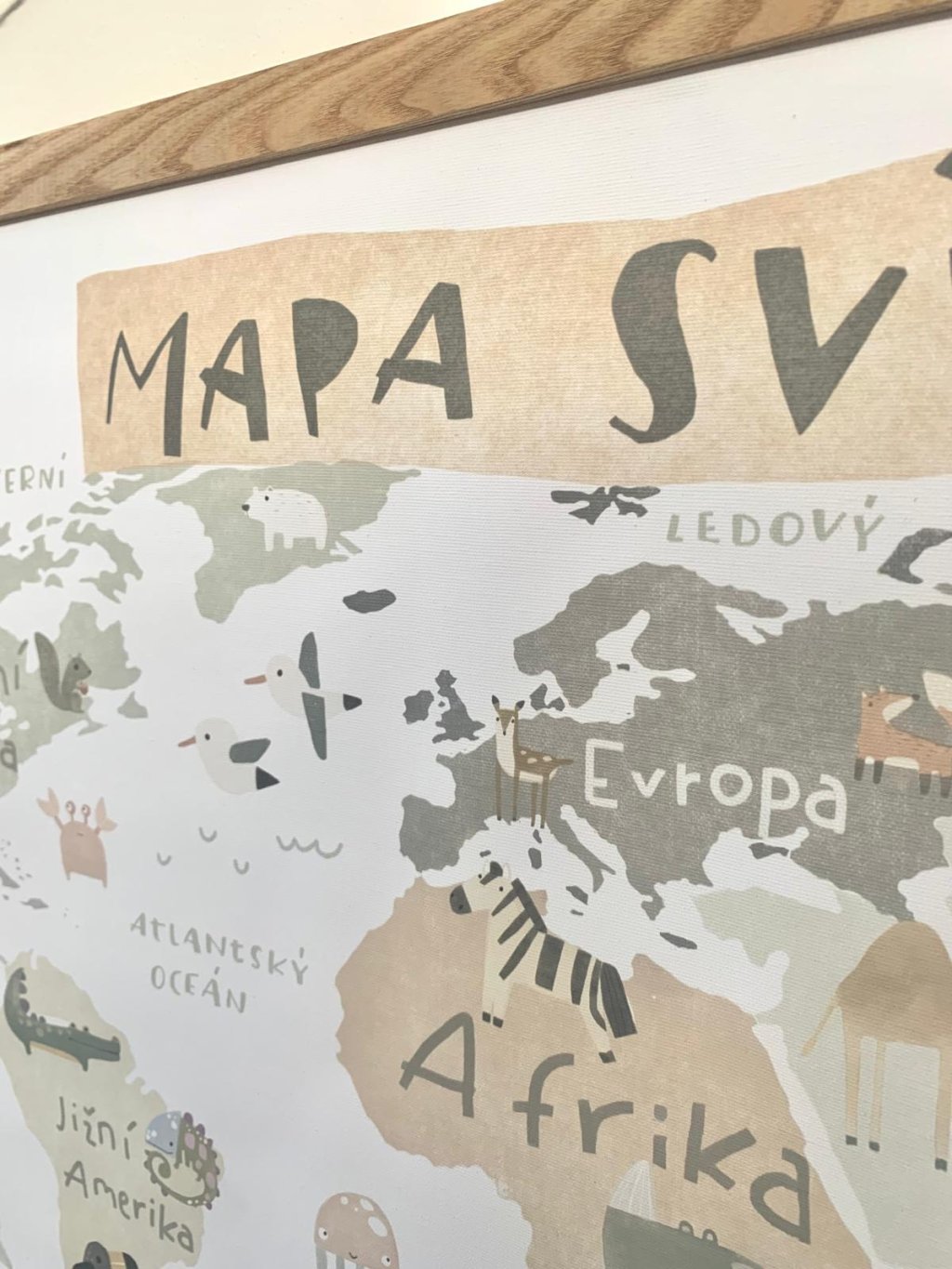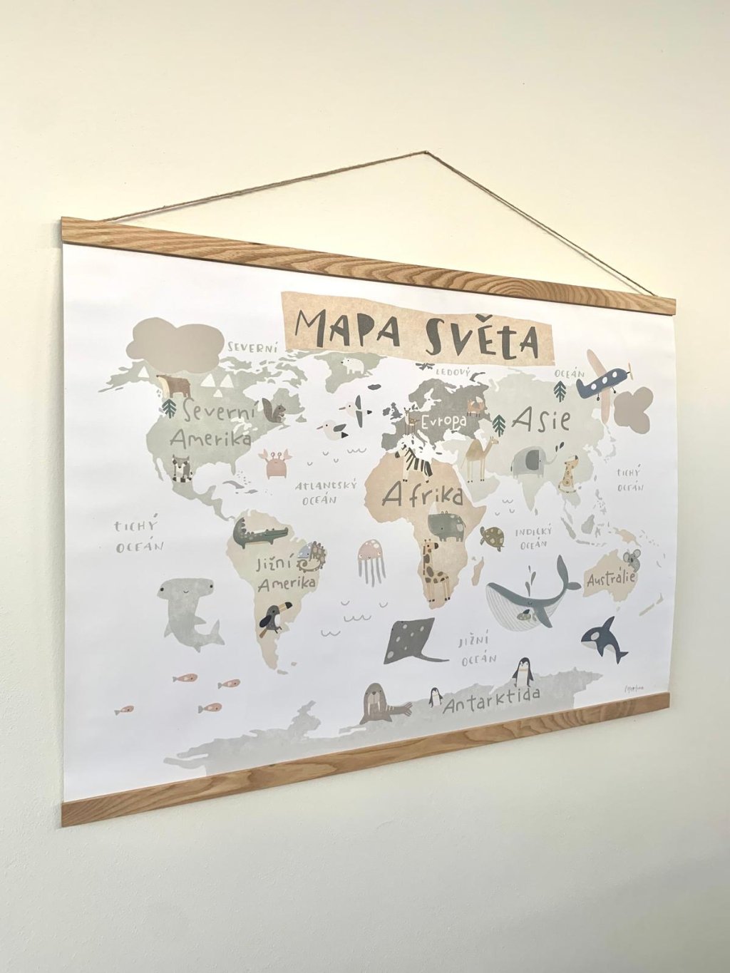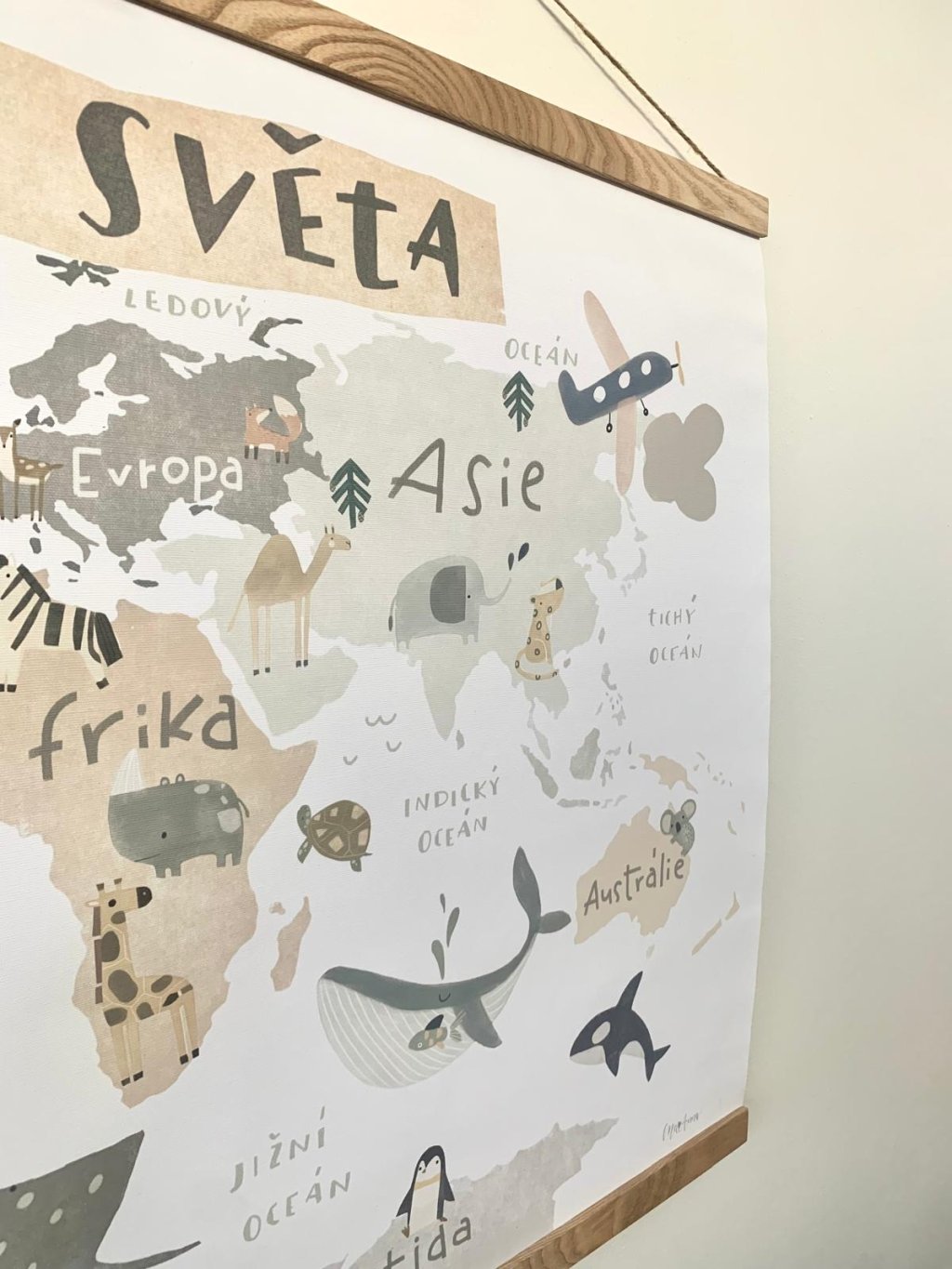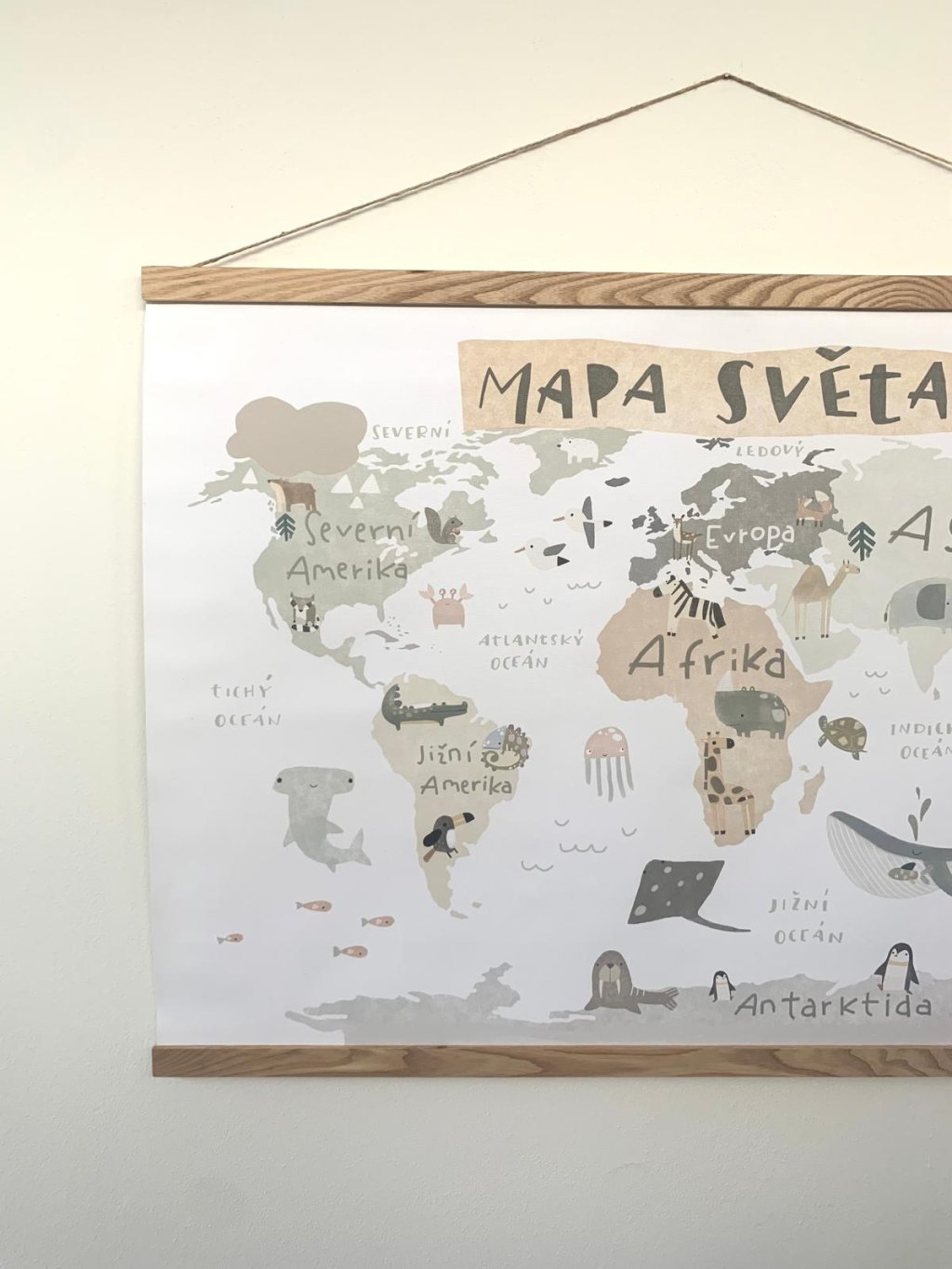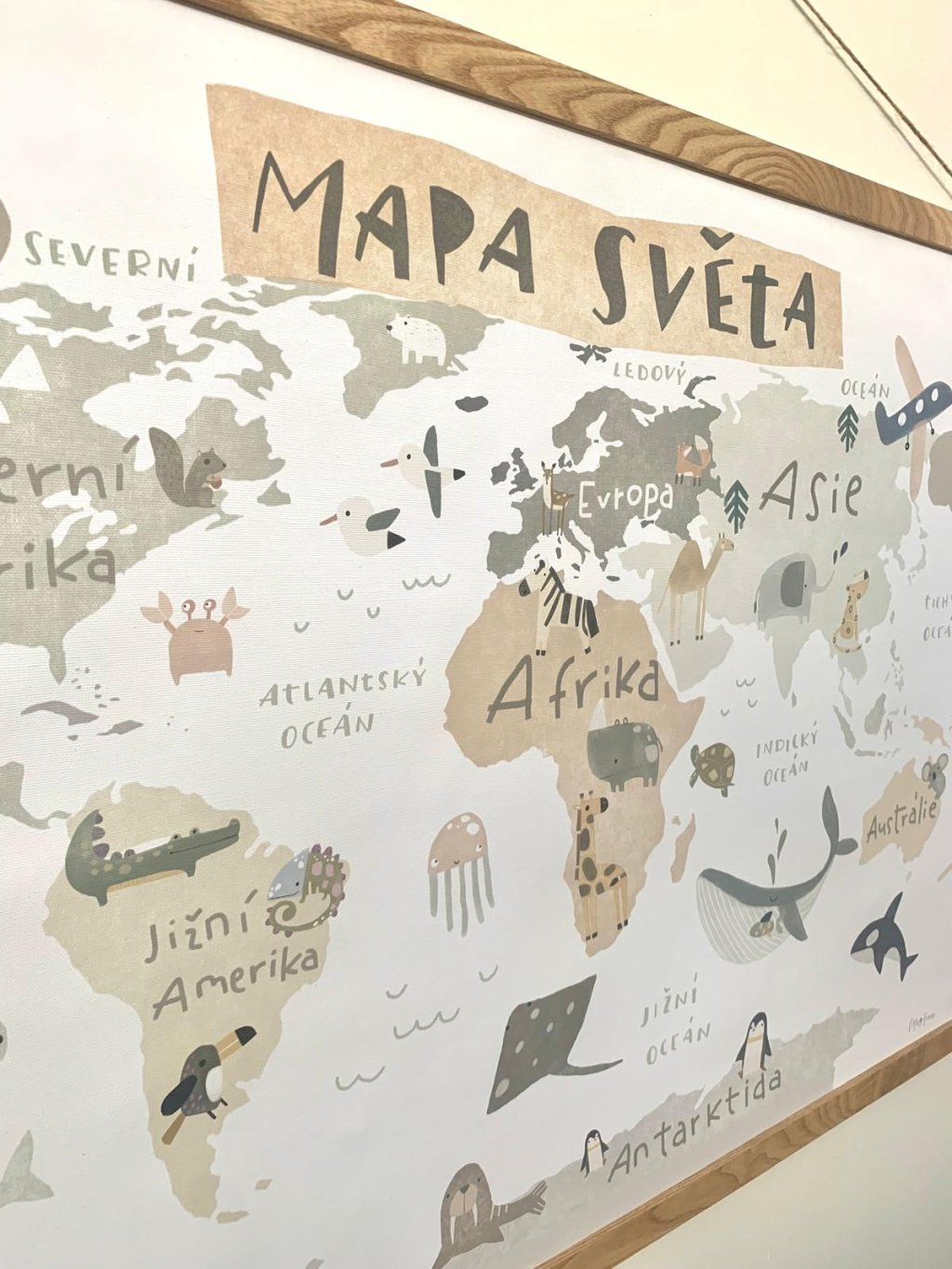 Vytvořili jsme pro malé objevitele mapu světa, která je nejen naučná, ale zároveň je krásným doplňkem na stěně dětského pokoje.